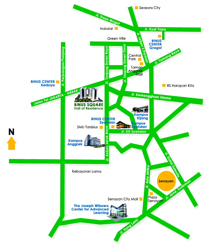 A: Jl. Budi Raya No. 21, Kebon Jeruk, Jakarta Barat 11530 T: (+62-21) 536-79106 F: (+62-21) 536-79107 E: binussquare@binus.edu W: www.binus.ac.id/binussquare